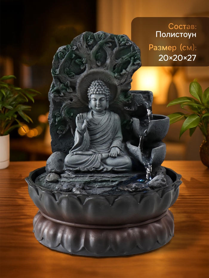 Этот настольный фонтан с фигуркой Будды создаёт островок спокойствия в вашем доме или офисе. Мягкое журчание воды и тёплая подсветка помогают снять напряжение после долгого дня и настроиться на позитивный лад.