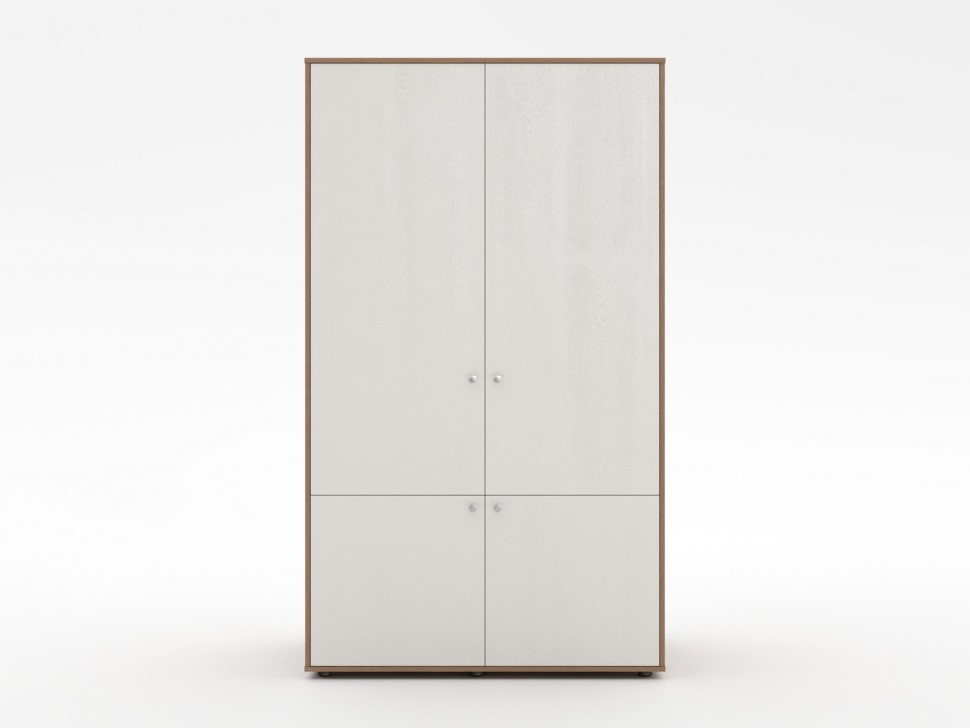 Внутреннее пространство разделено на две функциональные зоны: верхний отдел предназначен для верхней и сменной одежды на плечиках, нижний — для сумок, обуви и других личных вещей. Глухие дверцы скрывают содержимое, помогая поддерживать аккуратный вид рабочего кабинета.