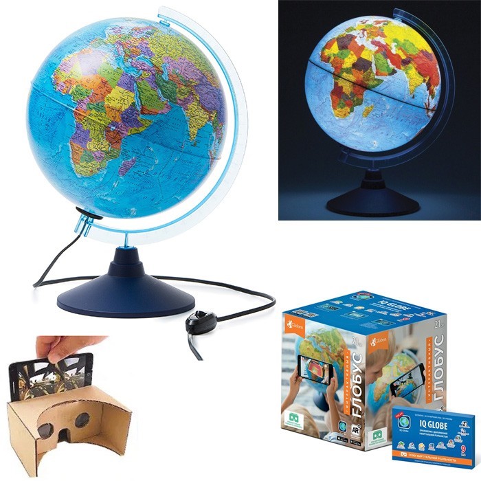 Комплектация: глобус с сетевым проводом, подставка, очки VR