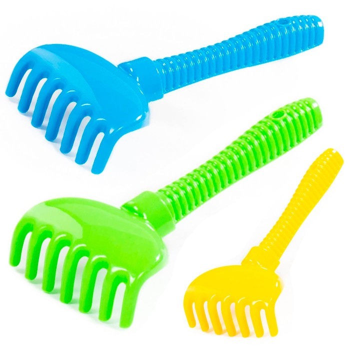 Небольшие грабли с рифленой ручкой удобно брать с собой на прогулку и на пляж для игр с песком. Они не займут много места, легкие и стойкие к воздействию солнечного света. Изделие выполнено из качественных нетоксичных материалов, безопасных для здоровья малыша. Товар представлен в ассортименте.