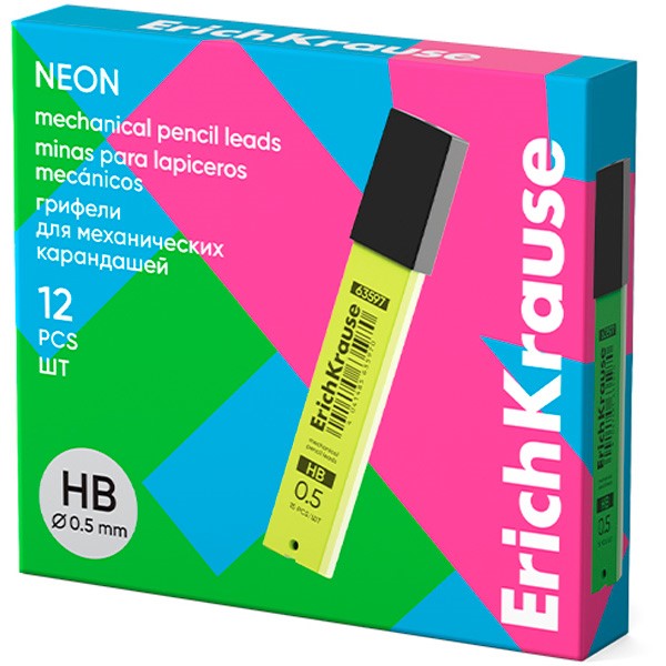 Грифели Neon для механических карандашей 0.5 мм, HB 63597 /Erich Krause/