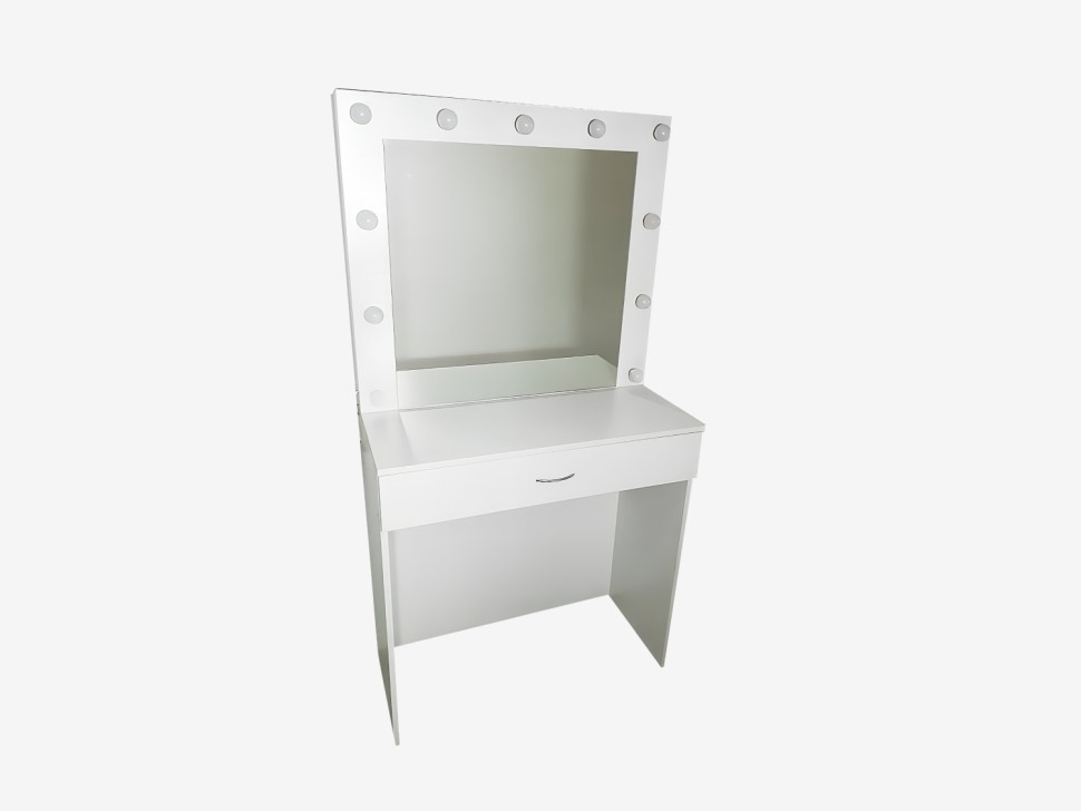 Небольшой практичный гримерный столик, изготавливается шириной 700 мм, 800 мм и 900 мм. Практичный гримерный столик, который не занимает много места, и не требует больших затрат.