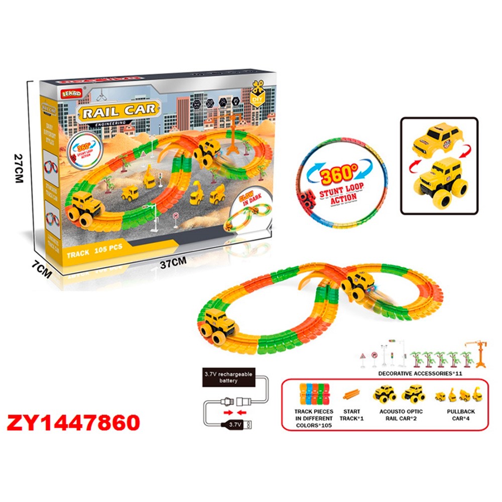 Трек собирается из деталей, которые позволяют собирать разные конфигурации дороги, даже петли.