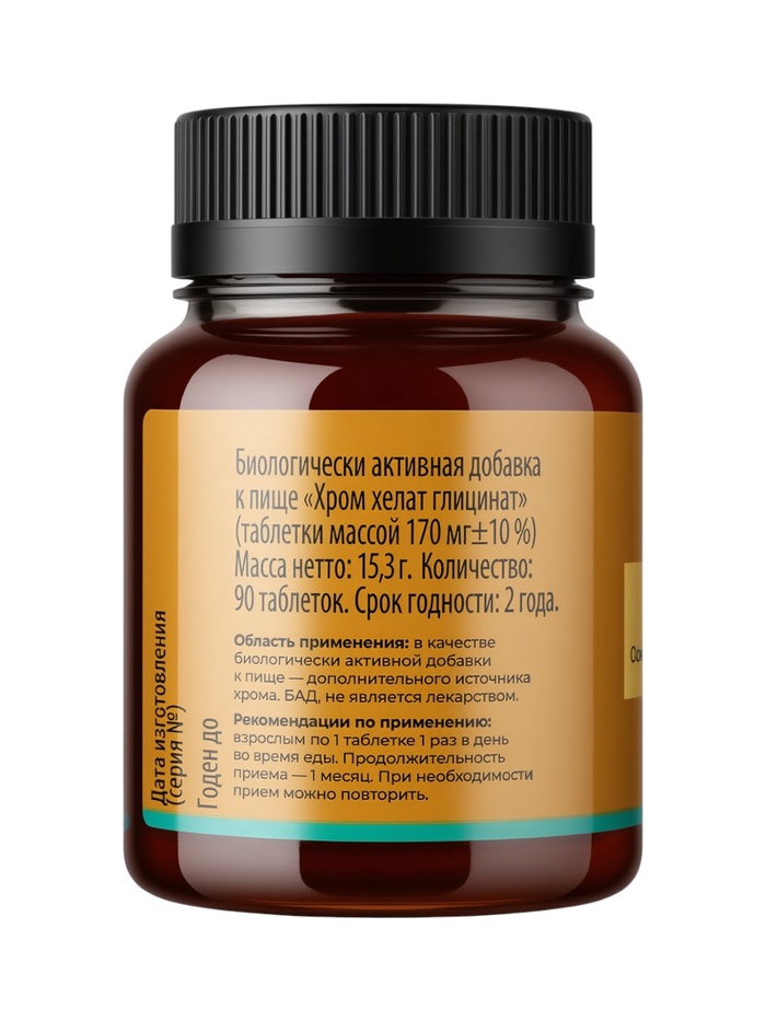 - Хелатная форма хрома — высокая усвояемость и эффективность.
