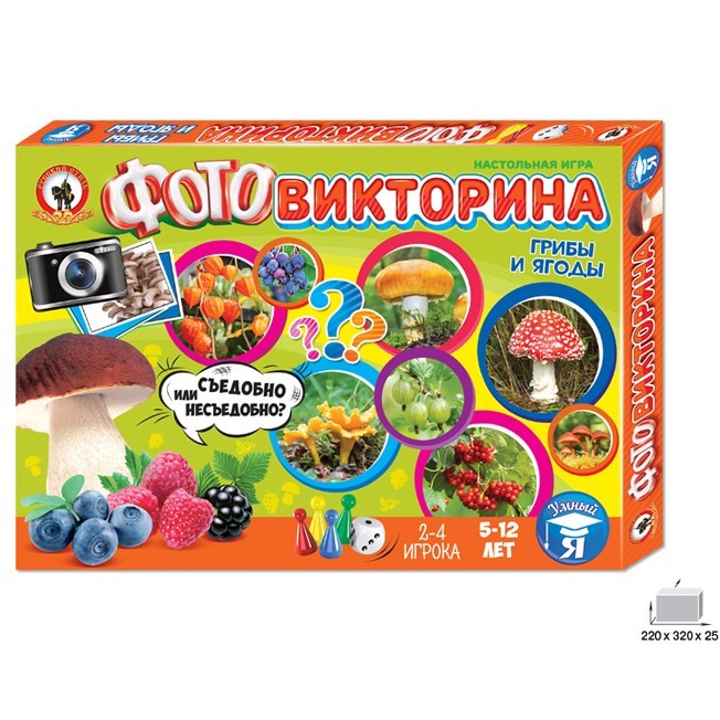 Настольная игра-викторина "Грибы и ягоды" расскажет ребенку о съедобных и несъедобных дарах природы, с которыми можно встретиться в лесной чаще, на зеленом лугу, в саду или огороде. Игра поможет пополнить знания об окружающем мире, словарный запас и улучшить скорость реакции, так как игровой процесс предполагает соревнование.