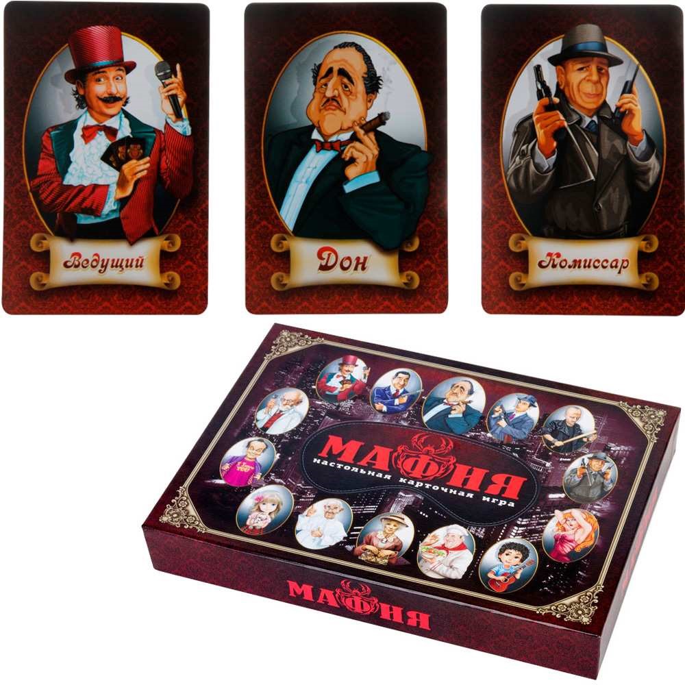 Единого свода правил игры в «Мафию» не существует, поэтому мы постарались сделать карты, которые позволяли бы играть практически в любой вид этой игры. Вот почему, несмотря на то, что правила написаны для двух самых простых и распространенных видов «салонной мафии», колоду можно использовать и для других разновидностей этой игры. Персонажи нарисованы так, что один из «мирных жителей» легко превращается в «маньяка», другой в «девушку», третий уже в рясе «священника» и так далее.