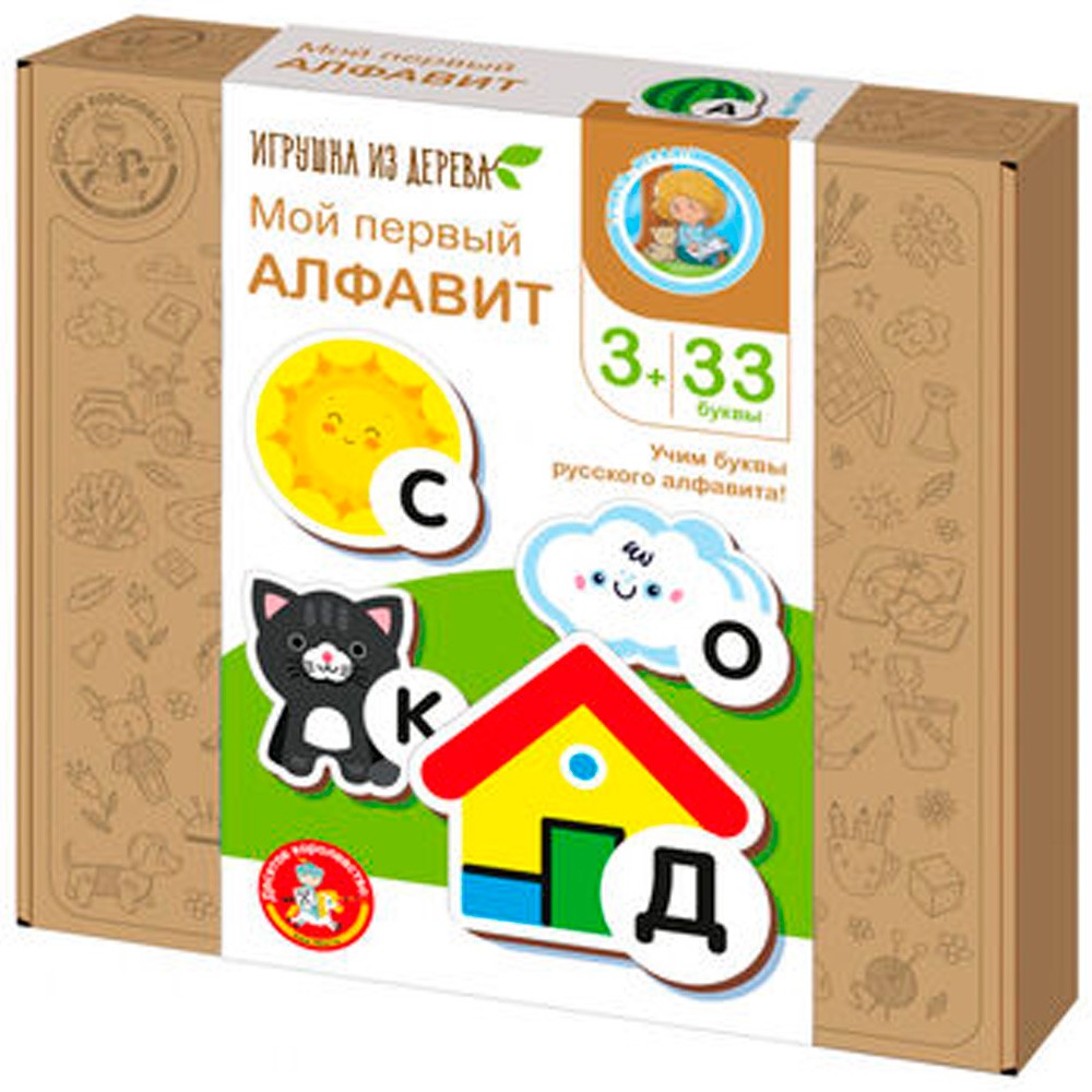 Настольная обучающая игра «Мой первый Алфавит» познакомит малышей с буквами русского алфавита. Дети запомнят, как выглядят буквы и какие слова начинаются на эту букву.