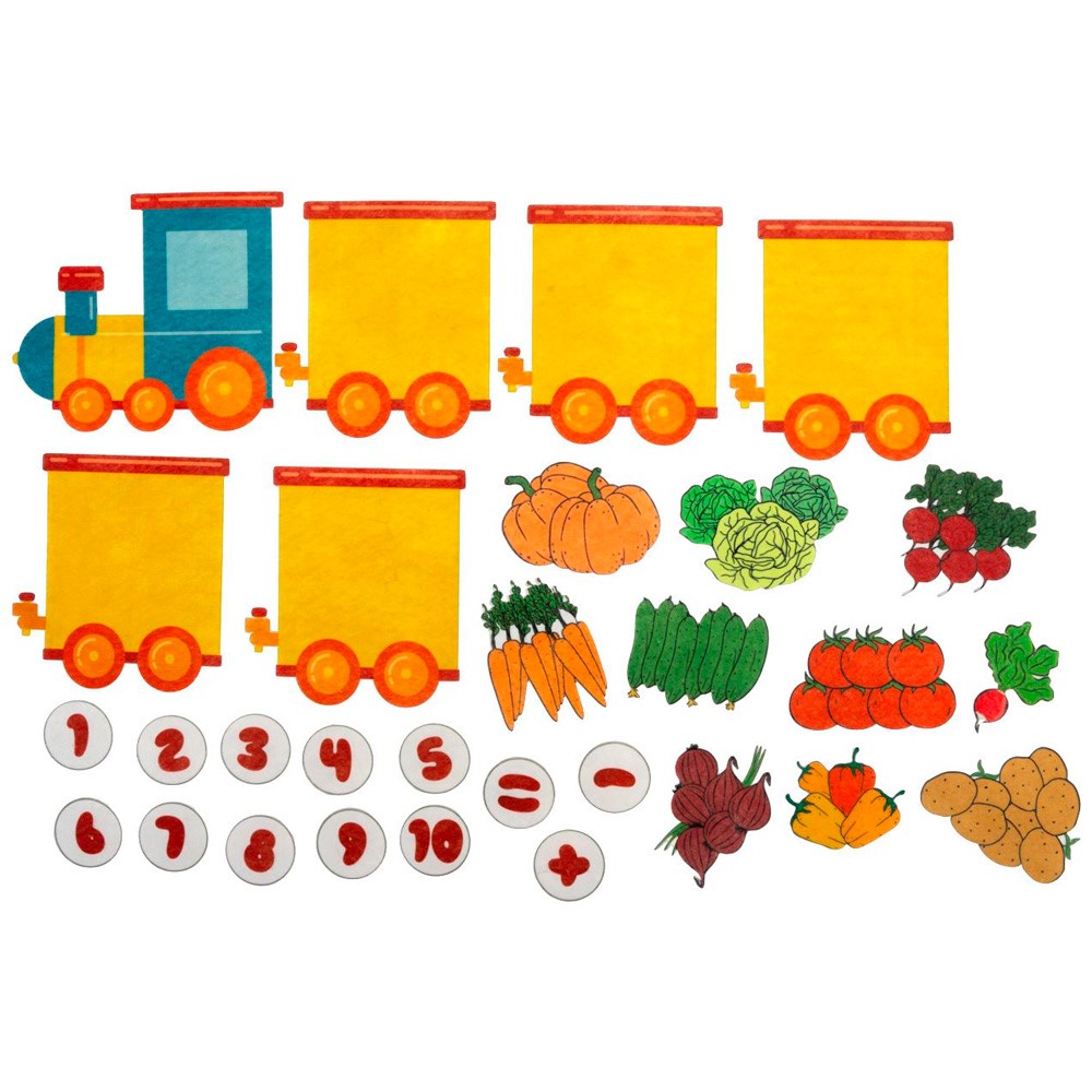 Комплектация: фигурки паровозов, овощей, цифр