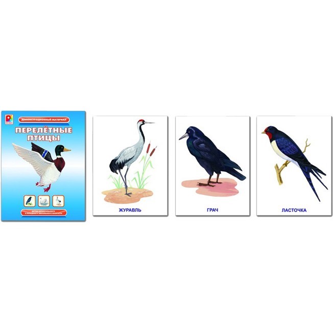 Демонстрационный материал "Перелетные птицы" состоит из 12 больших карт (21х28 см)и книжки- раскраски с крупными изображениями.