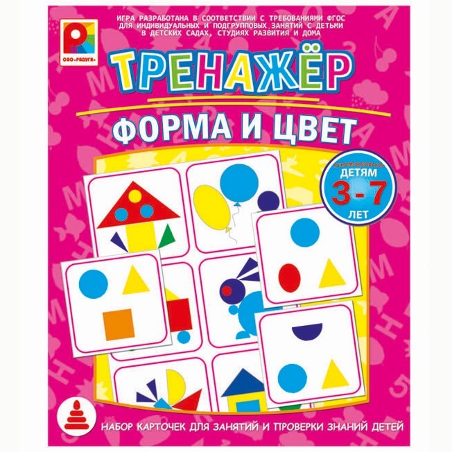 Предлагаем вам игру "Тренажер. Форма и цвет" для детей 3-7 лет, которая поможет закрепить представления детей о форме и цвете. Она разработана в соответствии ФГОС для индивидуальных и подгрупповых занятий (2 - 5 детей). Детям предлагается множество разнообразных заданий различной сложности с возможностью самопроверки на оборотной стороне карточек. Материал игры также можно использовать для проверки знаний детей о цвете и форме перед поступлением в школу.