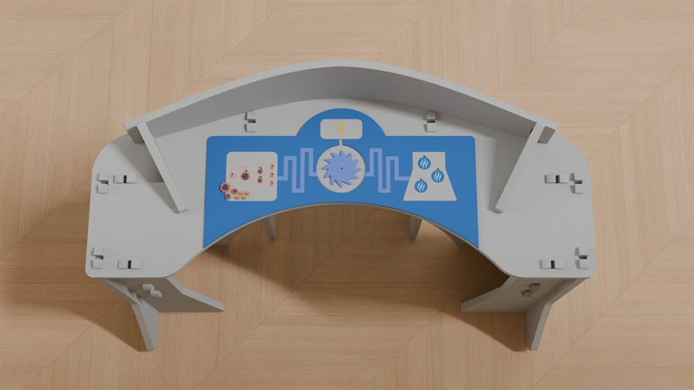 Научно-познавательный дизайн#nbsp;- Интерактивная схема преобразования атома в энергию доступно объясняет детям основы ядерной физики и энергетики. Безопасная конструкция#nbsp;- Мягкие полимерные материалы и закругленные углы обеспечивают полную безопасность во время игр и обучения. Развивающий потенциал#nbsp;- Стимулирует интерес к точным наукам, развивает логическое и пространственное мышление. Профориентационная функция#nbsp;- Знакомит с профессиями атомной отрасли: физик-ядерщик, инженер АЭС, энергетик. Многофункциональное пространство#nbsp;- Объединяет зону для обучающих игр, групповых занятий и комфортного отдыха. Практичность#nbsp;- Конструкторная сборка позволяет легко транспортировать и компактно хранить стол. Материалы: