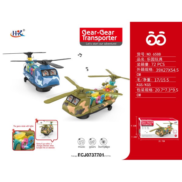 Игрушка на батарейках 658B Вертолет свет, звук, подвижные шестиренки в кор.