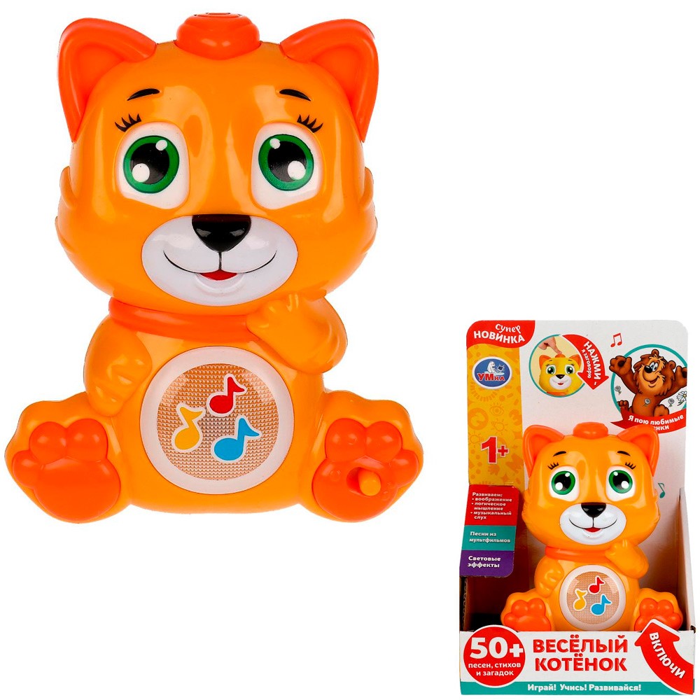 Игрушка на батарейках Веселый котенок 50 песен,стихов,загадок,звуков. Свет HT1214-R /60/