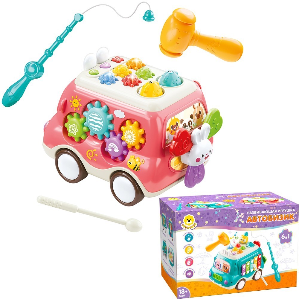 Игрушка развивающая Levatoys MK985 Автобизик розовый в кор.