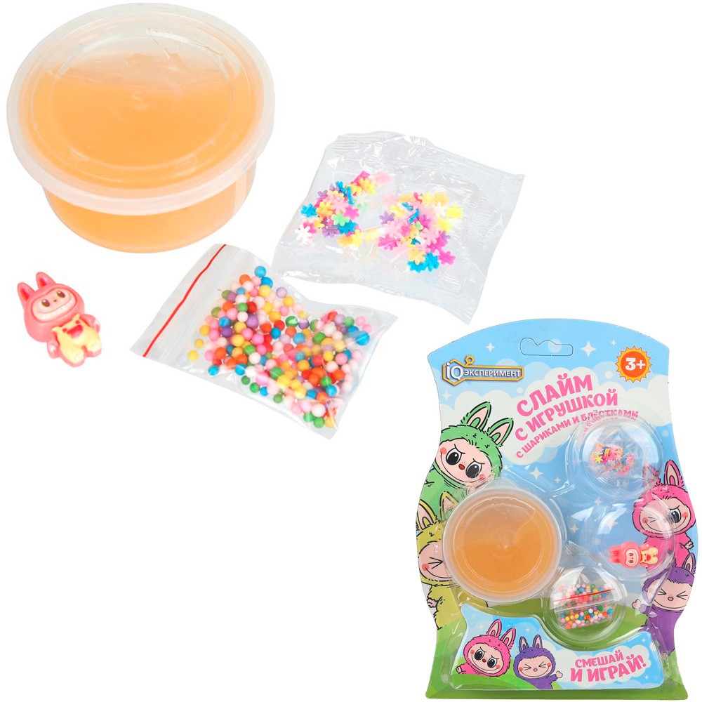 Игрушка Слайм с игрушкой, шариками, блестками IQ Эксперимент F140211SL-25