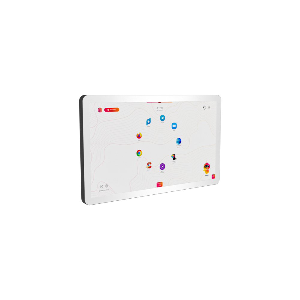 Многофункциональная панель в простом и современном дизайне не занимает много места, крепится на стену или на мобильную стойку на колесиках с фиксаторами. Это прекрасное решение для музеев, выставочных центров, образовательных учреждений (школ, колледжей, вузов и т.д.). Наша оболочка Aura работает с презентациями и всеми офисными приложениями.