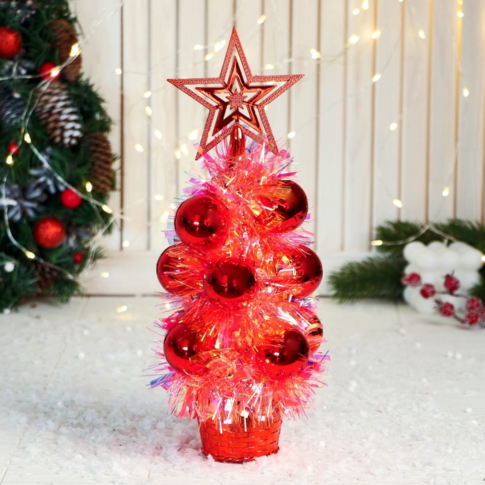 Искусственная ёлка настольная «Зимнее волшебство. Праздничная», перламутр, 10×26 см, красный, ПВХ ветки