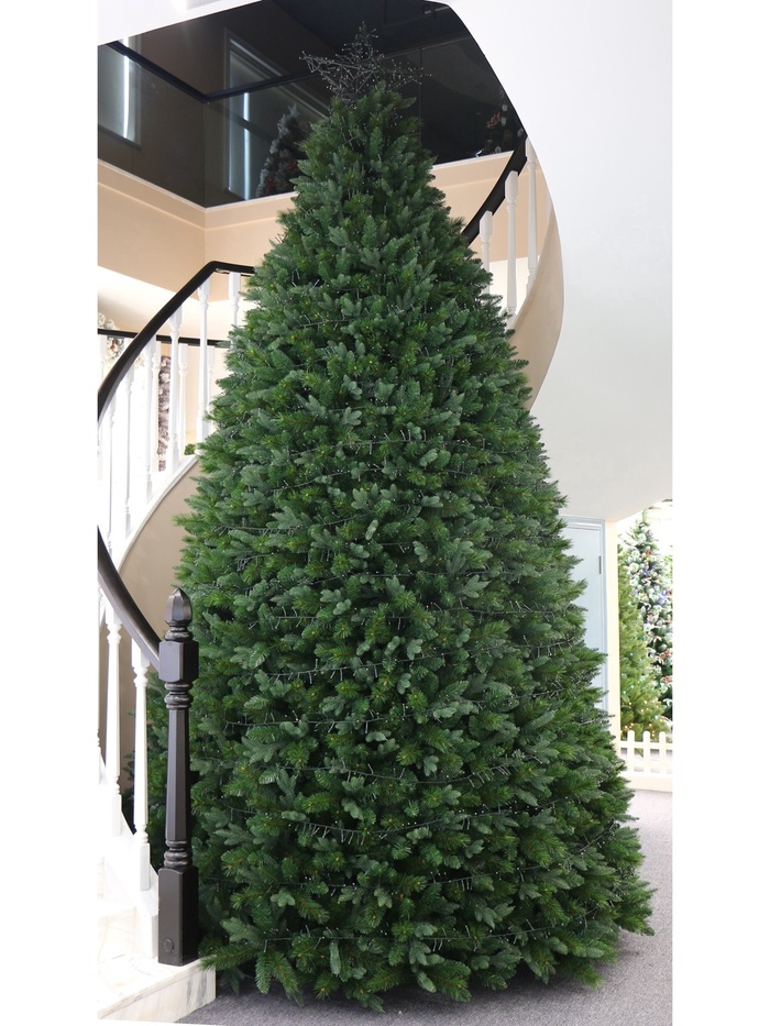 Эта ёлка воплощает традиции новогоднего декора, сочетая практичность и визуальную привлекательность. Её насыщенный зелёный цвет и высокая конструкция формируют эффектный фон для украшений и создают настроение торжества в любом пространстве.