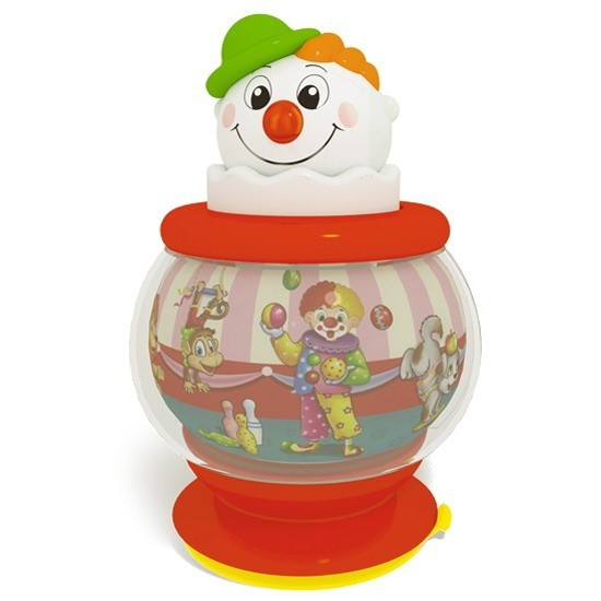 Карусель «Шапито» - это новый образ традиционной юлы. Вместо рукоятки малышу нужно просто похлопать клоуна по голове. От прикосновений малыша карусель начинает крутиться, и картинка на ней «оживет». Детям нравится наблюдать за движением картинок, тем более, что они могут сами влиять на скорость вращения карусели.