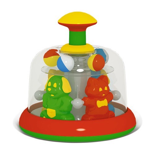 Красочная юла необычной формы имеет прозрачный корпус. Внутри расположены цветные фигурки и шарики. Это замечательный подарок для малыша. Изделие имеет яркую расцветку. Устойчивости игрушке придает плоское дно. При нажатии на ручку разноцветные фигурки в корпусе юлы катаются по кругу. Занятия с игрушкой помогут малышу развить двигательную активность, концентрацию внимания, координацию движений, слух, цветовое и тактильное восприятие.