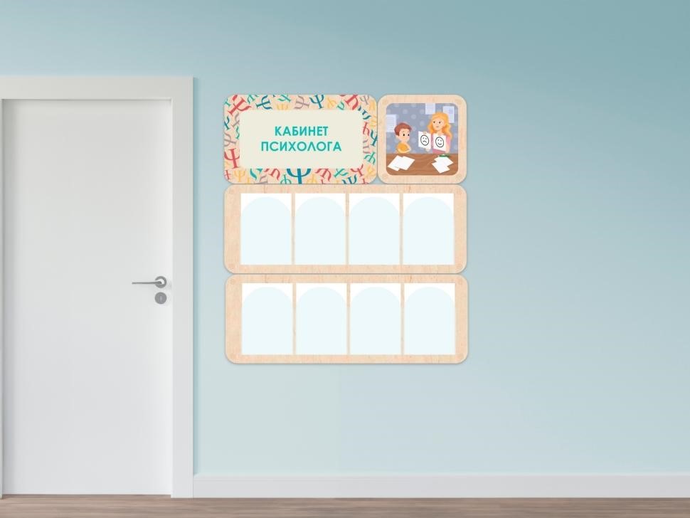 Стенд информации для детского сада, который рассказывает детям и родителям важные сведения касающиеся работы психолога. В акриловых карманах можно разместить часы приёма, новости, правила и многое другое. Яркий заголовок акцентирует внимание посетителей на этой информации.