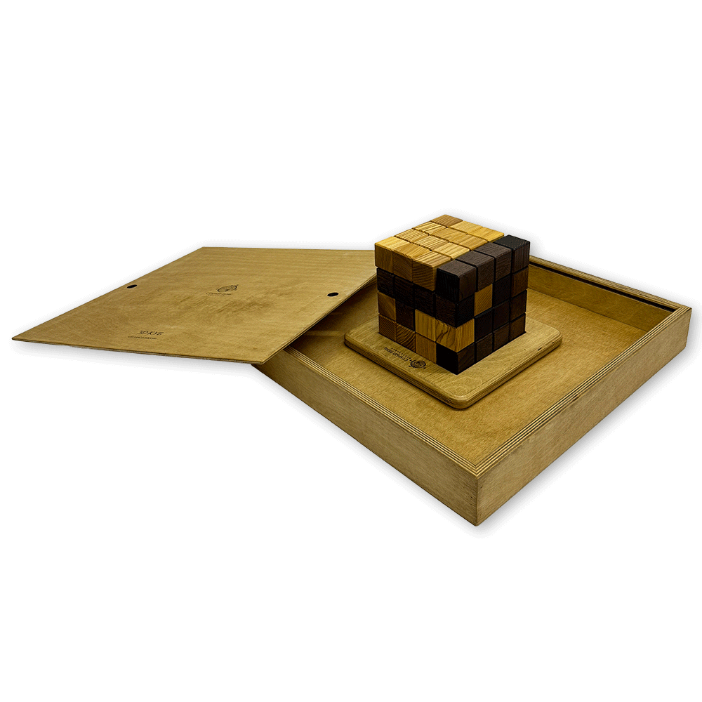 Деревянная головоломка Тетрис 3D куб – это увлекательная задача на пространственное воображение и логическое мышление, предлагающая игроку собрать воедино 64 кубика в форме куба 16 x 16 x 16 см, используя набор различных фигур, напоминающих детали классического тетриса.