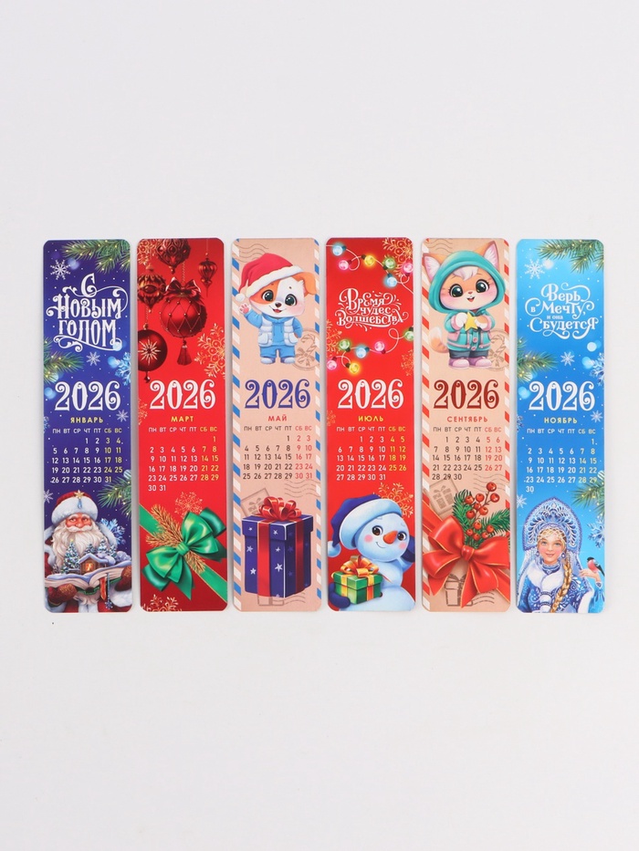 Календарь 2026 закладки, «Новогодняя почта», набор 6 шт. (комплект 4 шт)