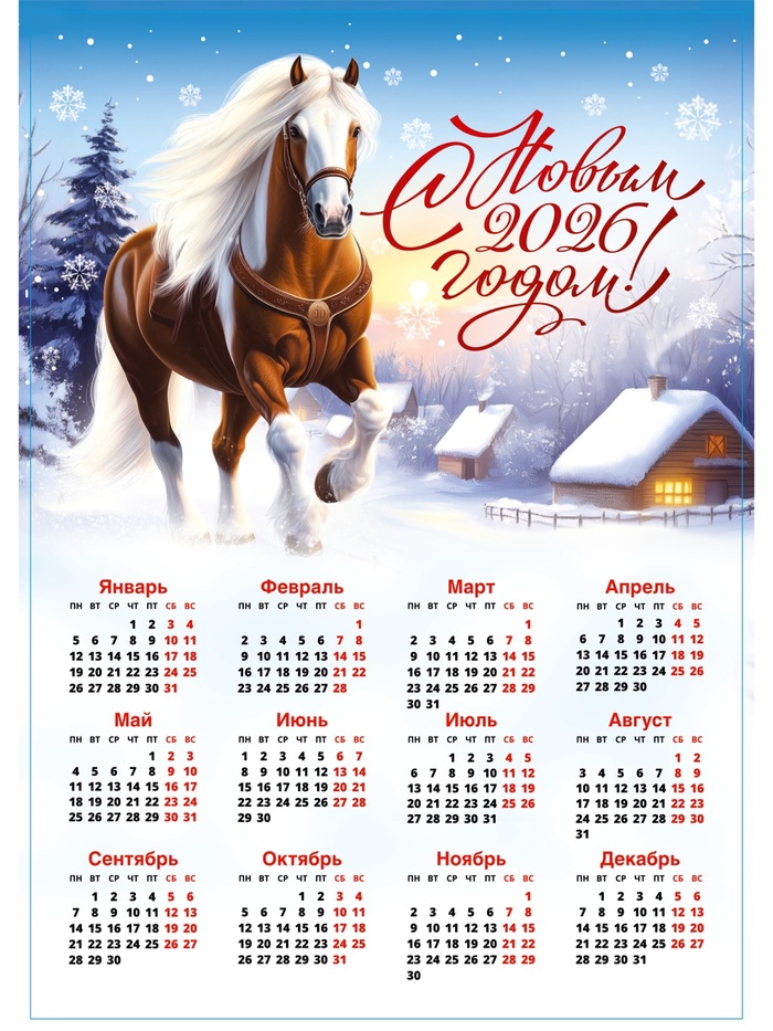 Календарь настенный 2026 «С новым годом!», А3 (комплект 10 шт)