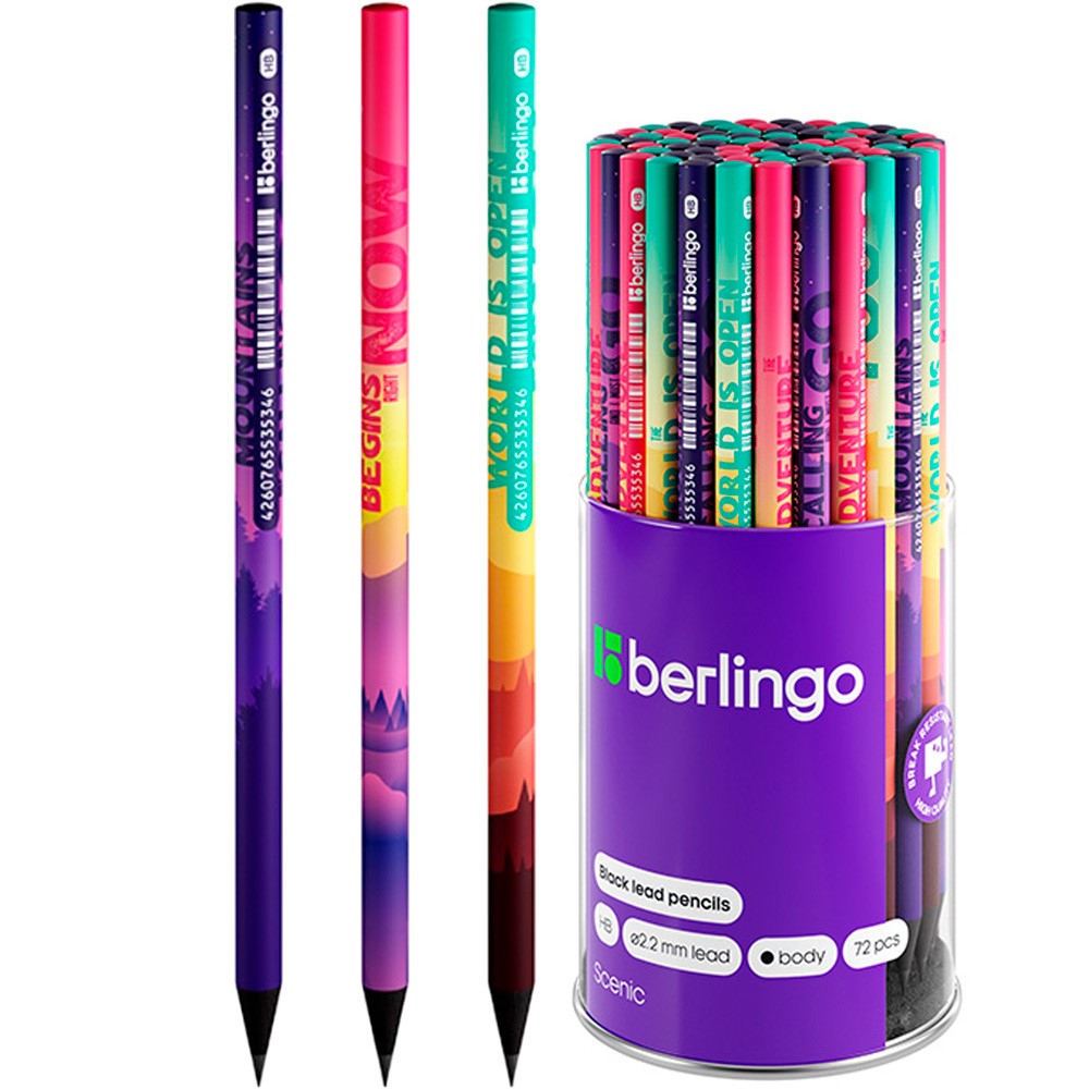 Карандаш ч/гр Berlingo "Scenic" HB, круглый, заточен., ассорти 352445