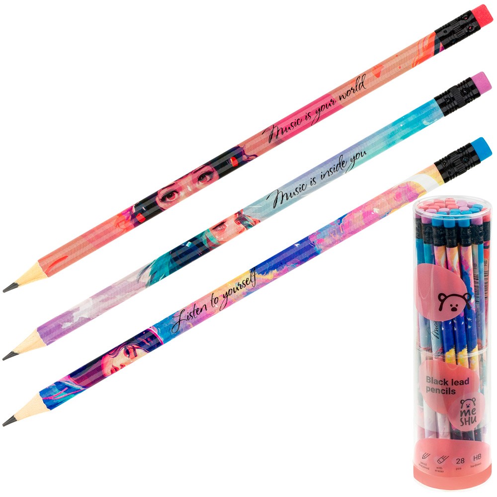 Карандаш ч/г MESHU "Girls and music", HB, заточен., с печатью, с ластиком, ассорти 368075