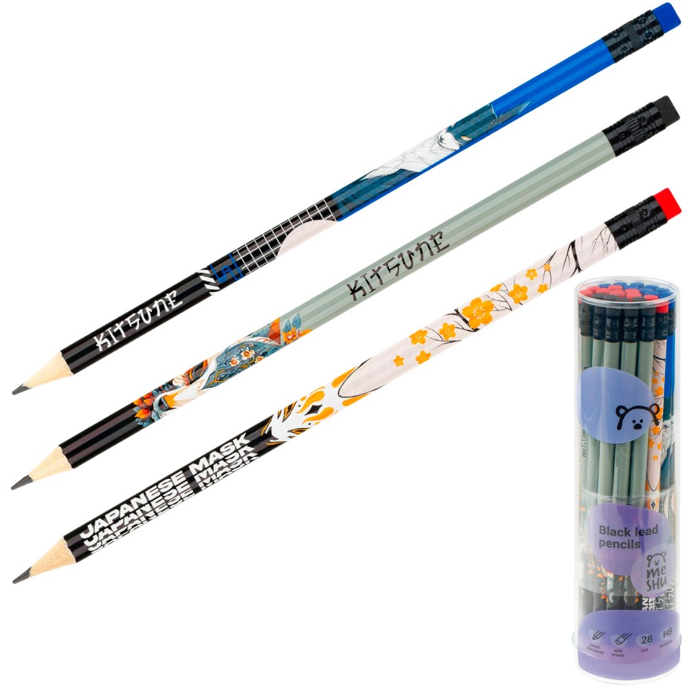 Карандаш ч/г MESHU "Kitsune", HB, заточен., с печатью, с ластиком, ассорти 368074