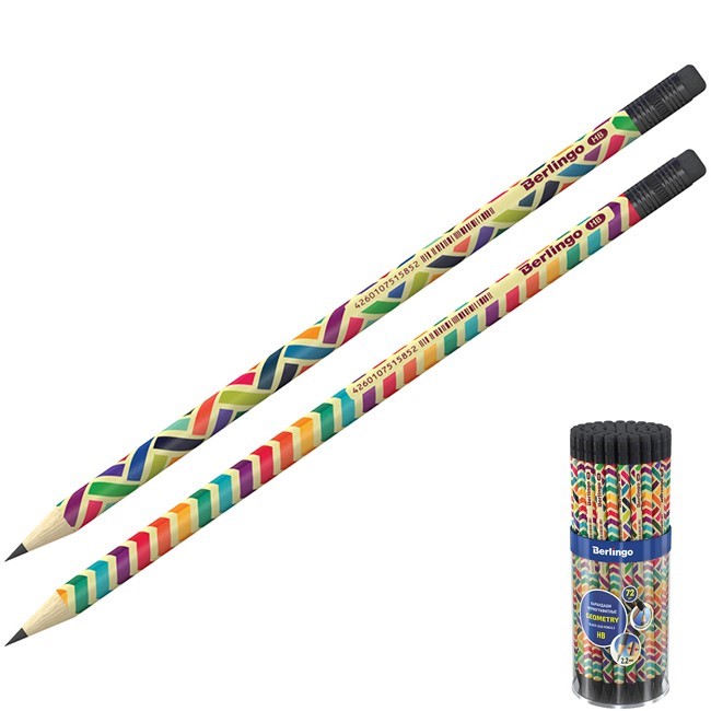 Карандаш ч/г НВ круглый с ластиком ассорти BP00898 Berlingo Geometry