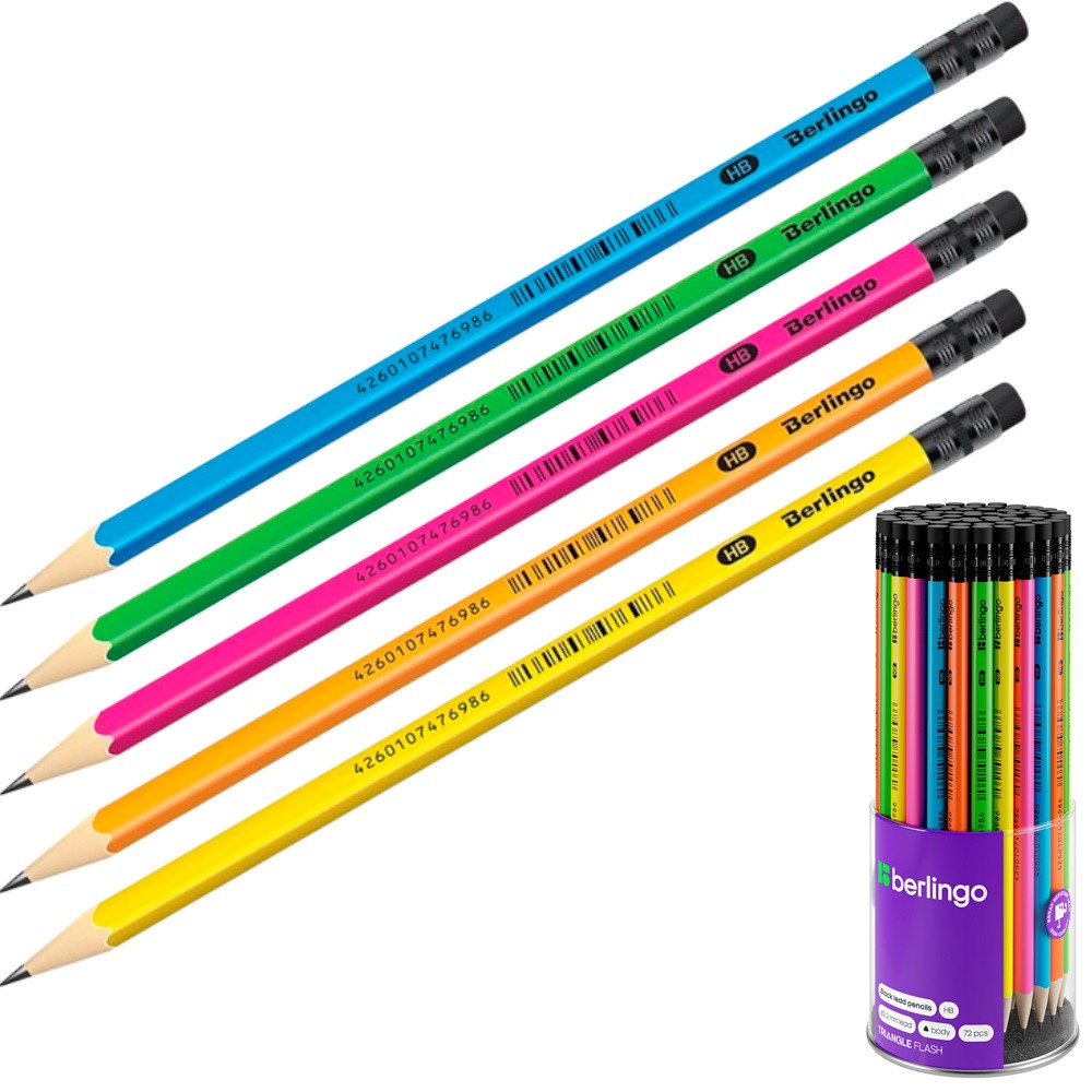 Карандаш ч/гр Berlingo "Triangle flash" HB, трехгранный, c ластиком BP00810