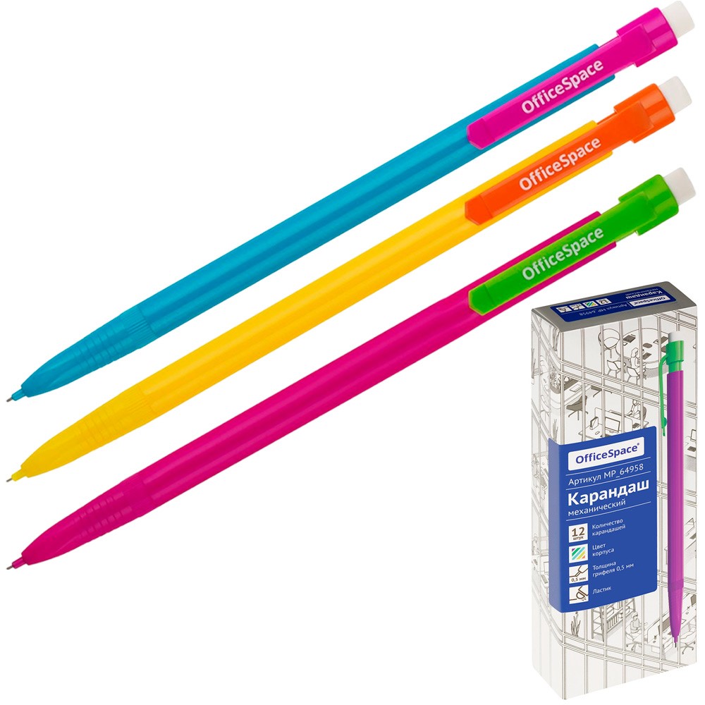 Карандаш ч/гр механический 0,5мм, с ластиком, ассорти OfficeSpace MP_64958
