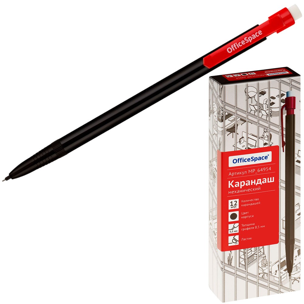 Карандаш ч/гр механический 0,5мм, с ластиком, черный MP_64954 OfficeSpace