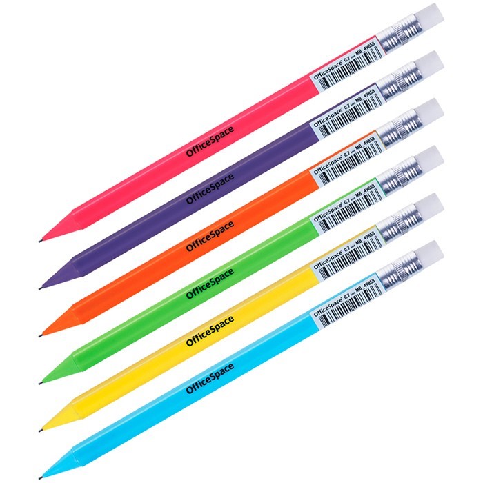 Карандаш ч/гр механический 0,7мм, с ластиком, ассорти OfficeSpace 297433