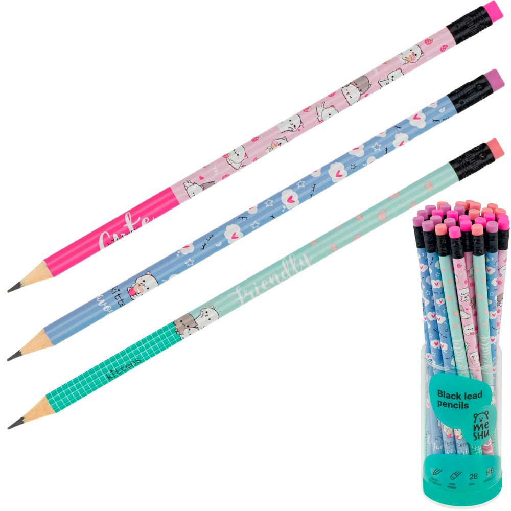 Карандаш ч/гр MESHU Kittens, HB, заточен., с печатью, с ластиком, ассорти MS_58142