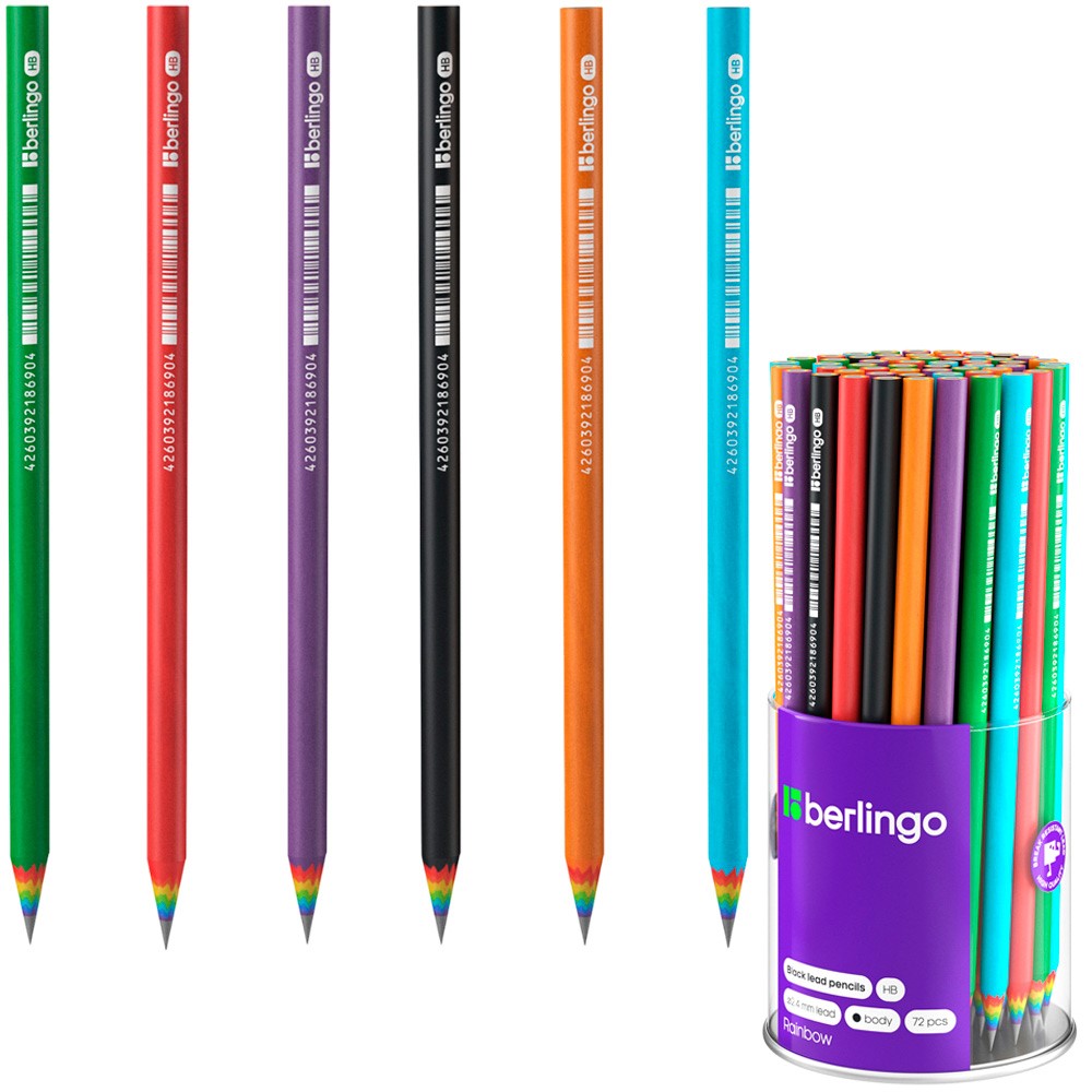 Карандаш ч/гр "Rainbow" HB, круглый, заточен., ассорти 320769 Berlingo