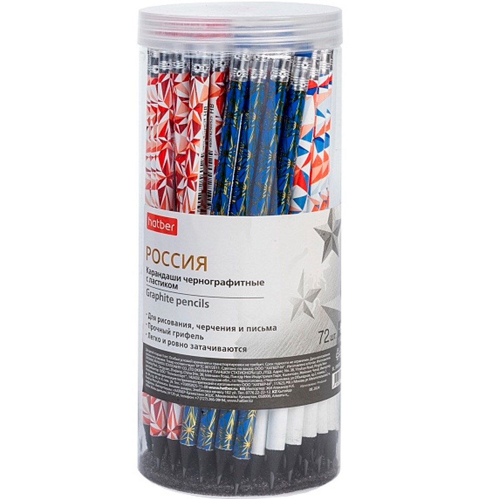 Карандаш ч/гр Россия "HB" с ластиком 088408