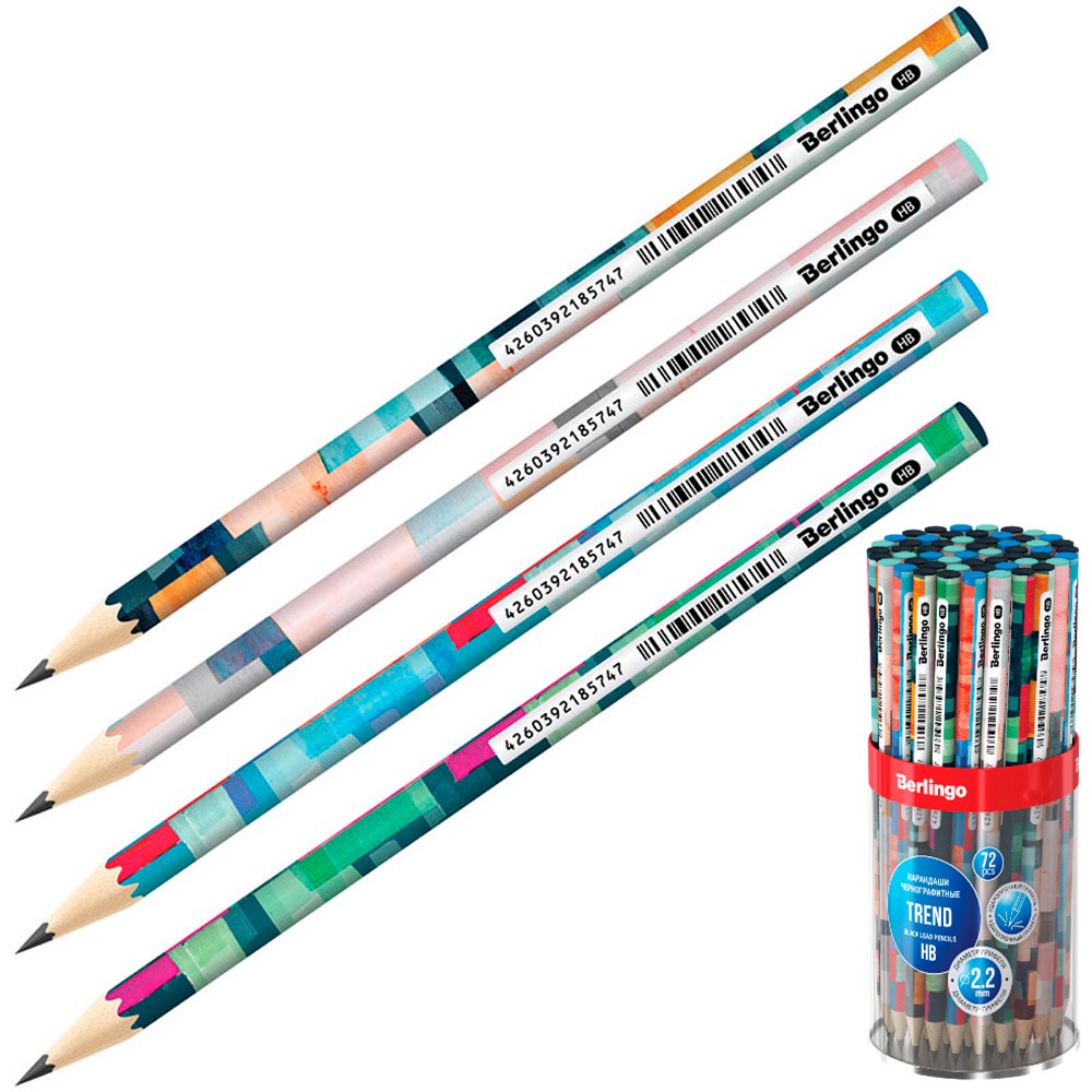 Карандаш ч/гр "Trend" HB, HB, круглый, заточен., ассорти BP01315 Berlingo