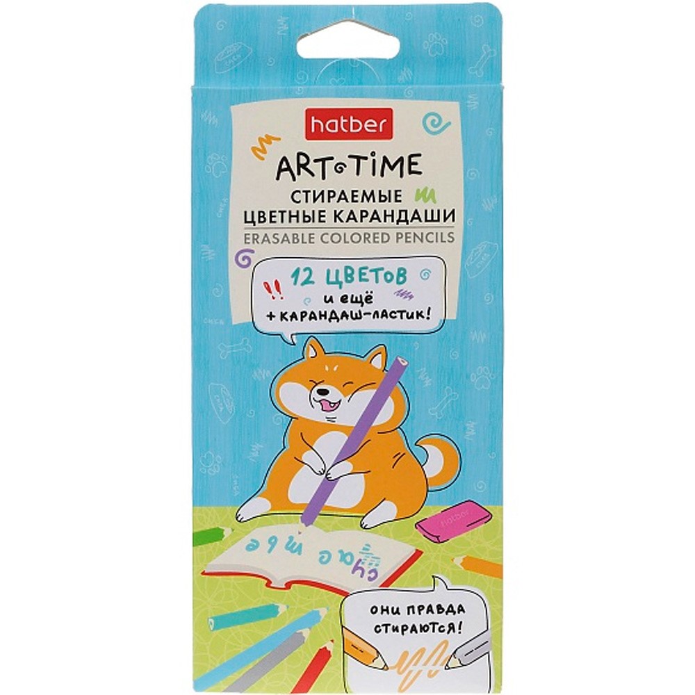 Карандаши цветные 12 цв. + 1 карандаш-ластик -ART-TIME- стираемые 093058