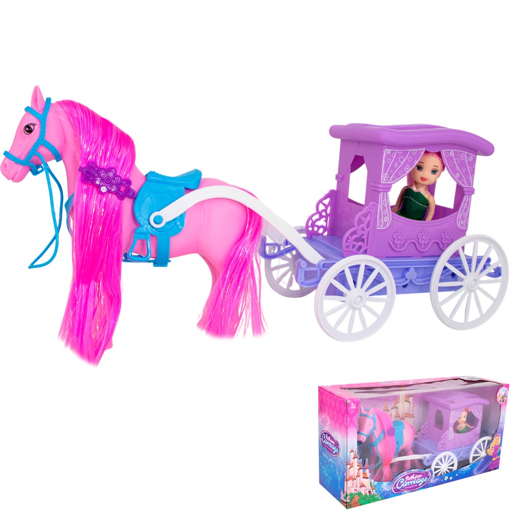 Изящная карета, запряженная лошадью, станет чудесным подарком для девочки.