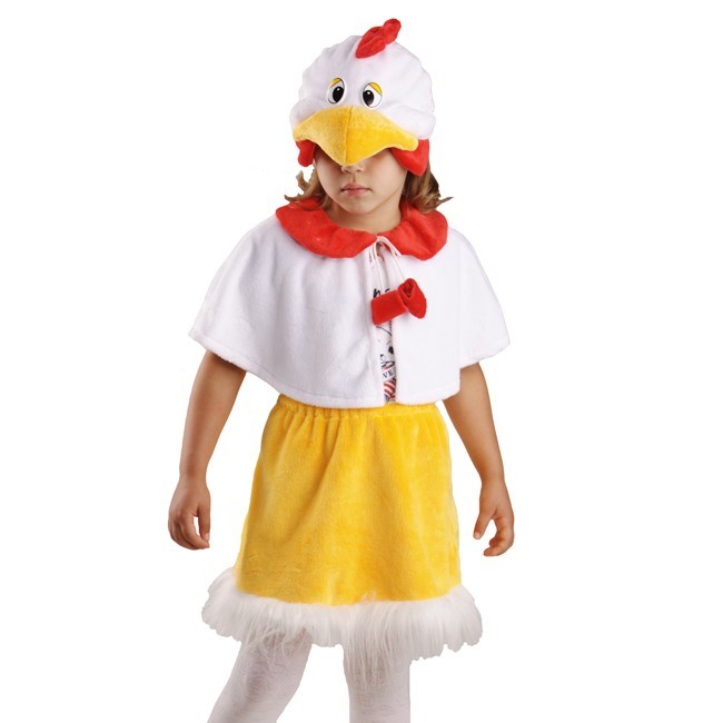 Когда в садике досталась роль курочки Рябы на помощь приходит компания "Карнавалия", которая изготавливает замечательные детские костюмы из плюша. Костюм Курочка Ряба 89029 - это и нарядный костюм, и яркий образ на детский утренник и на выступление. Костюм также подойдет для театрализованного выступления. Яркий, оригинальный наряд позволит полностью перевоплотиться. Дополнит наряд шапочка-маска. Пелерина декорирована красным воротничком и завязками, а юбка по низу обшита мехом. Костюм изготовлен из мягкого плюша. При пошиве используются яркие плотные натуральные смесовые ткани - стойкие к истриранию, не мнутся. Регулировка под нужный размер - это очень хорошо для бюджетных учереждений: не надо покупать несколько костюмов на все размеры, достаточно одного.
