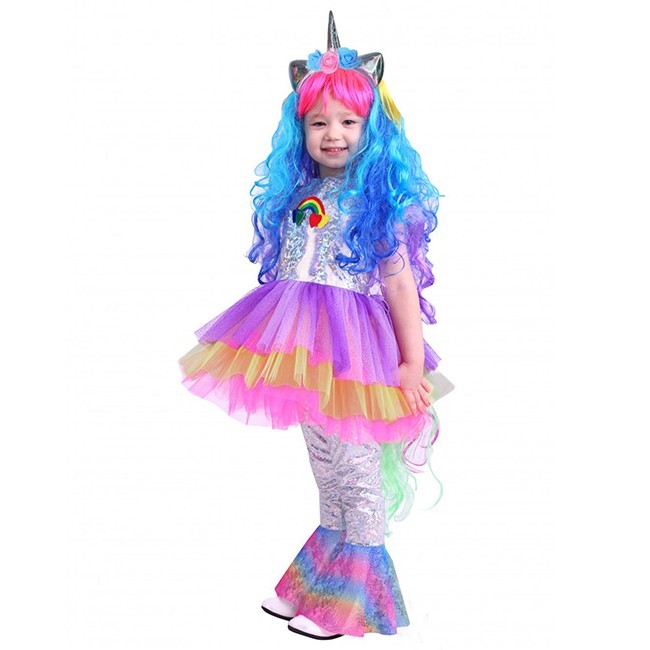 Компания "Пуговка" предоставляет обширный ассортимент нарядов для различных случаев: утренники в детском саду, карнавалы, балы-маскарады, театрализованное представление. Костюм прекрасной пони очень красивый: радужные и серебристые элементы декора будут приятно сверкать, ткань легкая и воздушная, прекрасно держит форму. Костюм создаст неповторимый образ и вызовет улыбки. Наряд удобен, не сковывает движений и приятен на ощупь. Платье сшито из тонкой ткани. Дополнит образ парик и ободок.