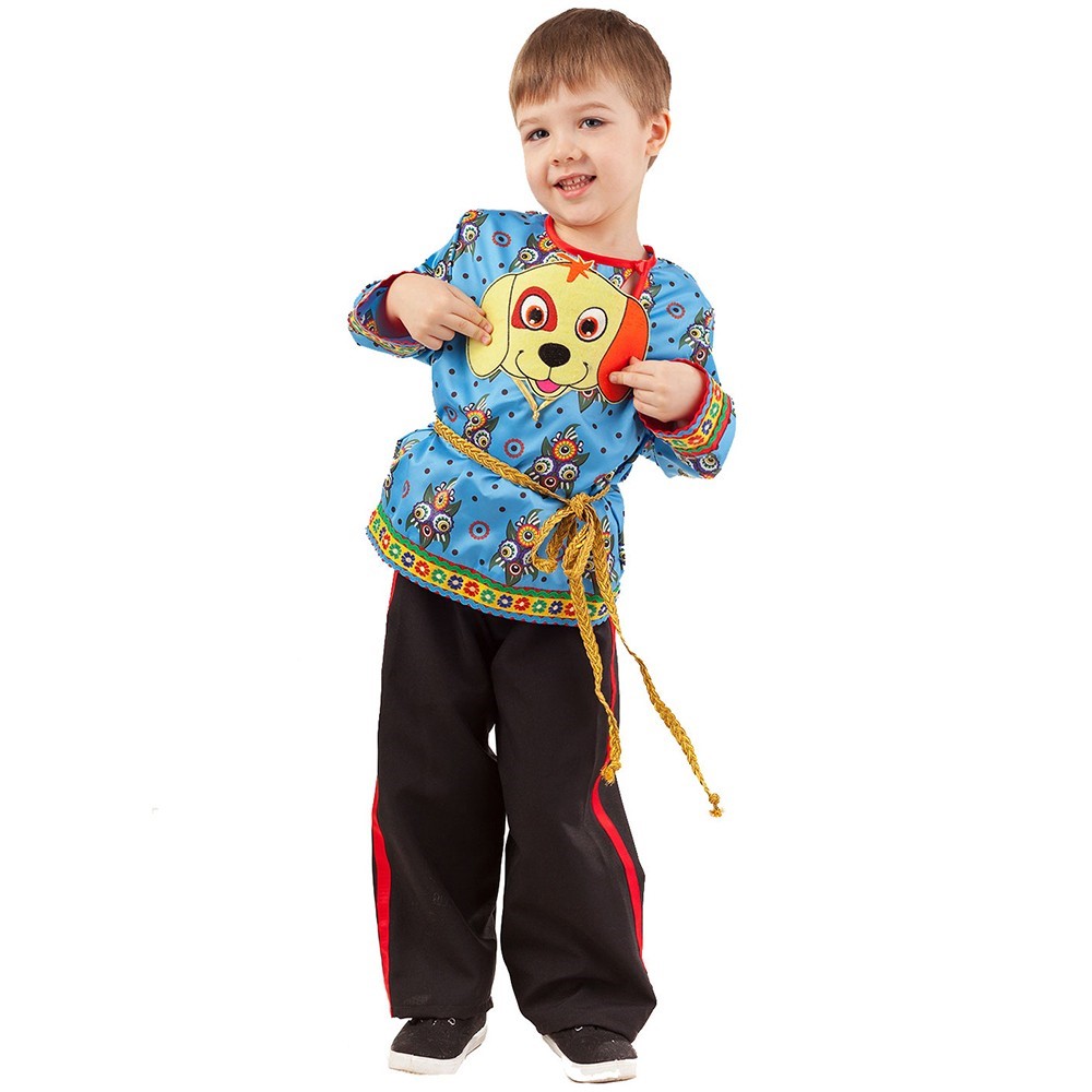 Когда нужен яркий и нетривиальный образ для праздника, на помощь придет компания "Пуговка", изготавливающая разнообразные карнавальные костюмы. Костюм щенка выполнен в русском народном стиле. Расшитая узорами рубаха дополнена изящным поясом и кантом по краям. Этот наряд подойдет и для утренника в детском саду, и для театрального представления, и для тематического праздника. Яркий новогодний костюм Собачка Филя 1001 к-18-26 несомненно понравится подвижным малышам. Он изготовлен из прочной и яркой ткани. Образ дополняет аппликация на груди в виде мордочки симпатичного щенка. Одежда не сковывает движений. При пошиве используются яркие плотные натуральные смесовые ткани - стойкие к истриранию, не мнутся.