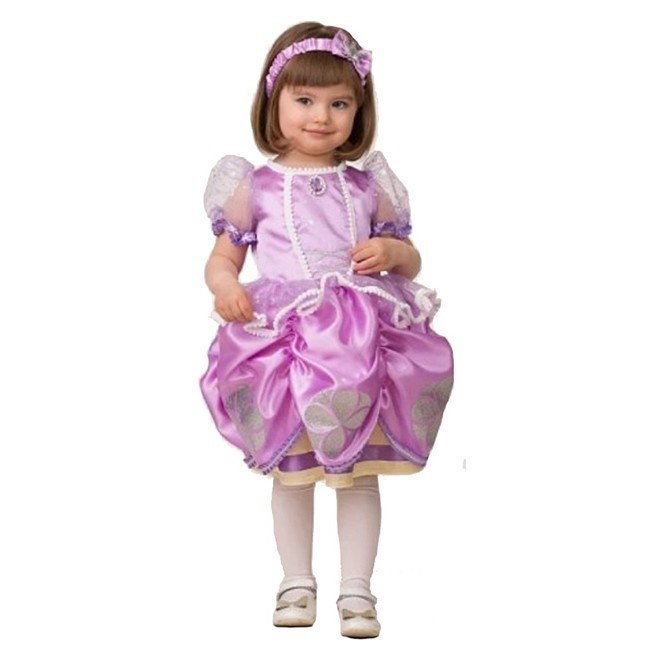 Костюм "София Прекрасная" просто создан для малышек, которые мечтают представить себя в роли сказочной принцессы. В комплект уже входит все необходимое для создания волшебного образа: платье с полупрозрачными рукавами-фонариками, брошь с изображением Софии, а также эластичная повязка на голову с бантиком. Платье украшено оторочкой из белой тесьмы, юбка пышная и многослойная.