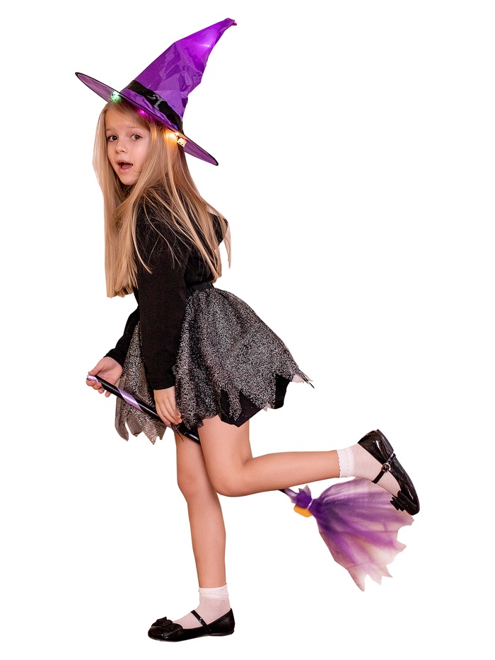 Карнавальный костюм детский «Ведьма с метлой»: юбка, шляпа, метла, р. 104-116