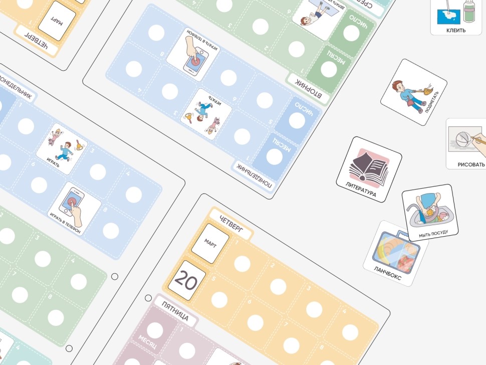 Набор карточек можно индивидуально сформировать под нужды каждого ребенка.