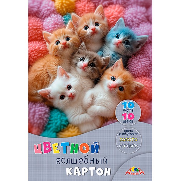 Картон цветной 10 л. 10 цв. волшебный Котята С0010-48