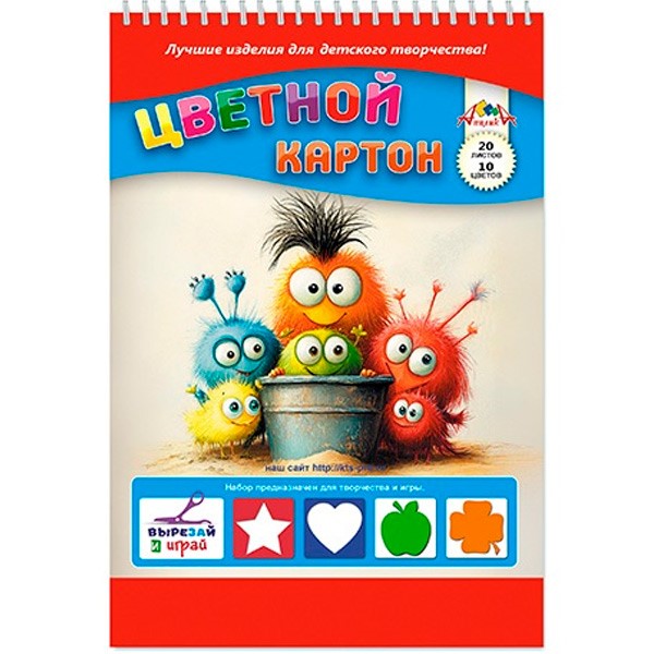 Картон цветной 20 л. 10 цв. А4 Глазастики С2806-36